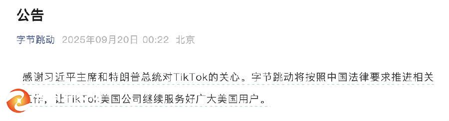 9月20日凌晨,字节跳动发布公告称,字节跳动将按照中国法律要求推进相关工作,让TikTok美国公司继续服务好广大美国用户。