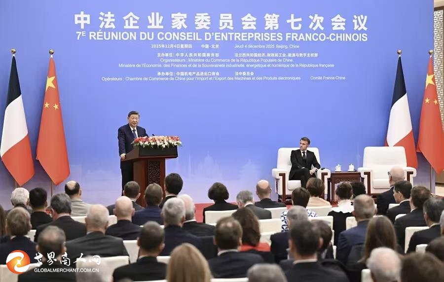12月4日上午,中法企业家委员会第七次会议在京举办,国家主席习近平同法国总统马克龙共同出席闭幕式并致辞。中华人民共和国商务部部长王文涛与法兰西共和国经济、财政和工业、能源与数字主权部部长莱斯屈尔共同主持闭幕式。会议由中国商务部、法国经财部主办,中国机电产品进出口商会、法中委员会承办。中法两国政府、企业等各界代表约150人参加闭幕式。