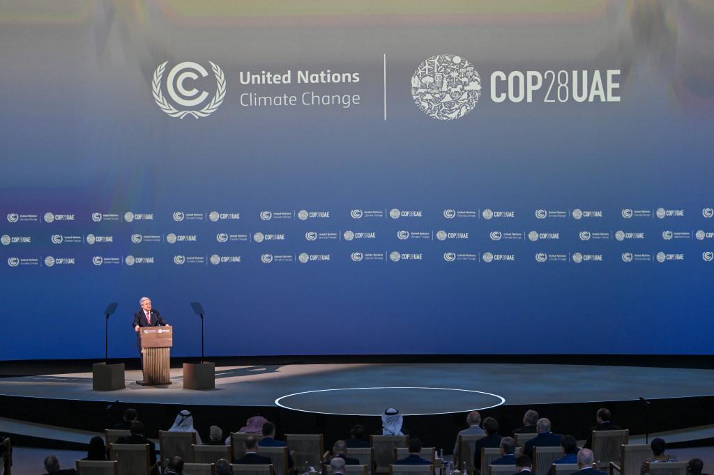 2023年12月1日,联合国秘书长古特雷斯在阿联酋迪拜世界气候行动峰会开幕现场致辞。新华社发(联合国气候变化迪拜大会供图)