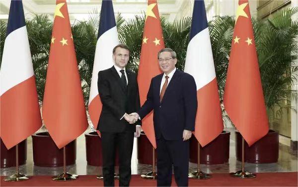 12月4日下午,国务院总理李强在北京人民大会堂会见来华进行国事访问的法国总统马克龙。李强表示,近年来,在两国元首战略引领下,中法关系与合作取得很多新的进展和成果。今天上午,习近平主席同总统先生举行会晤,为
