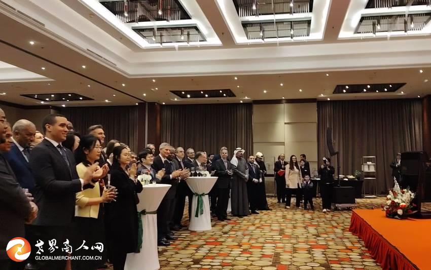 世界商人网总编辑王晓玲与罗马尼亚驻华使馆公使先生在保加利亚国庆招待会现场交流合影